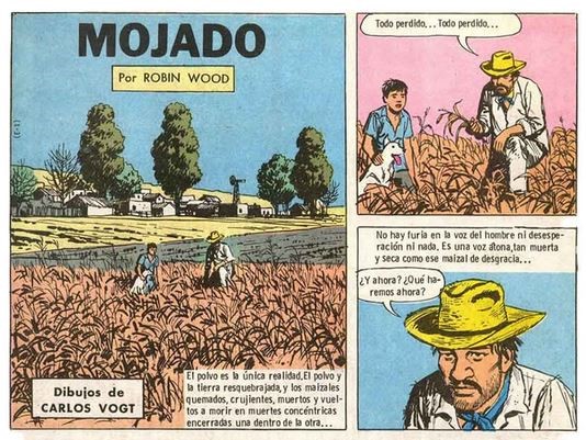 Editorial Columba publicó en sus últimos años una historieta llamada precisamente “Mojado”, escrita por el genial Robin Wood e ilustrada por el talentoso Carlos Vogt.