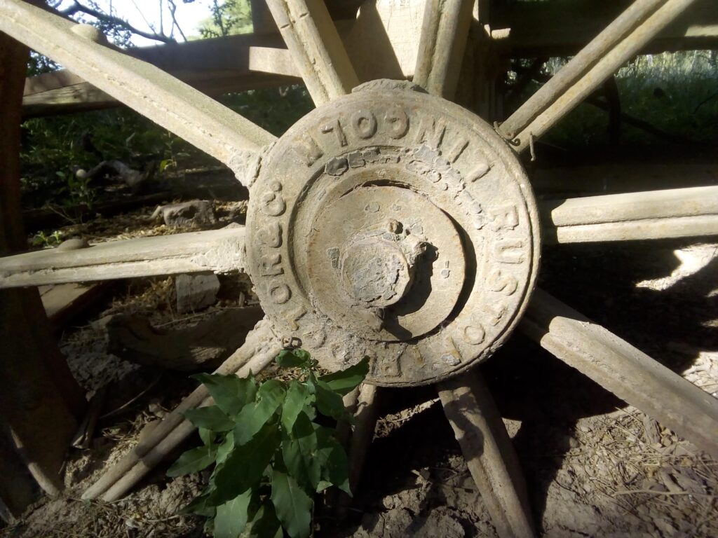 Las cuatro ruedas de hierro pertenecen a la firma “Ruston.Proctor & Co” de Lincoln en Inglaterra. La compañía cambió de nombre y socios con el tiempo. Nacida en 1840, tomó la denominación de referencia en 1857 y la mantuvo hasta 1918, en la que volvió a cambiar. La construcción de maquinaria de vapor fue su campo industrial: tractores, locomotoras, motores portátiles, por excelencia, incluso maquinaria de excavación. En internet se encuentran fotos de maquinaria de esta prestigiosa firma inglesa, fruto de la Revolución Industrial.